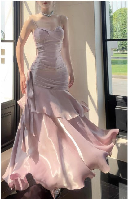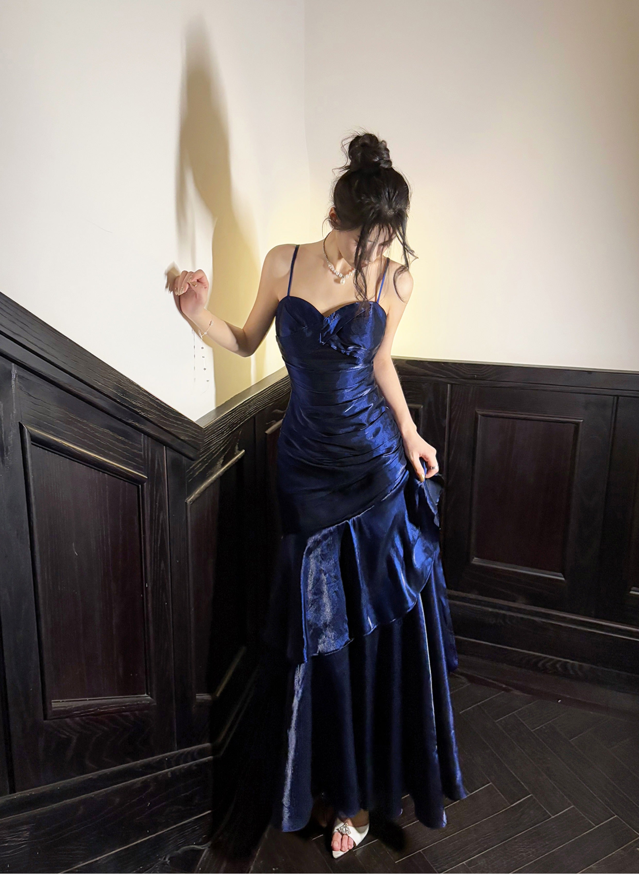 Elegant Mermaid Spaghetti Straps Blue Satin Long Prom Dresses Party Dress 21st Birthday Outfits Graduation Dresses HZ1121